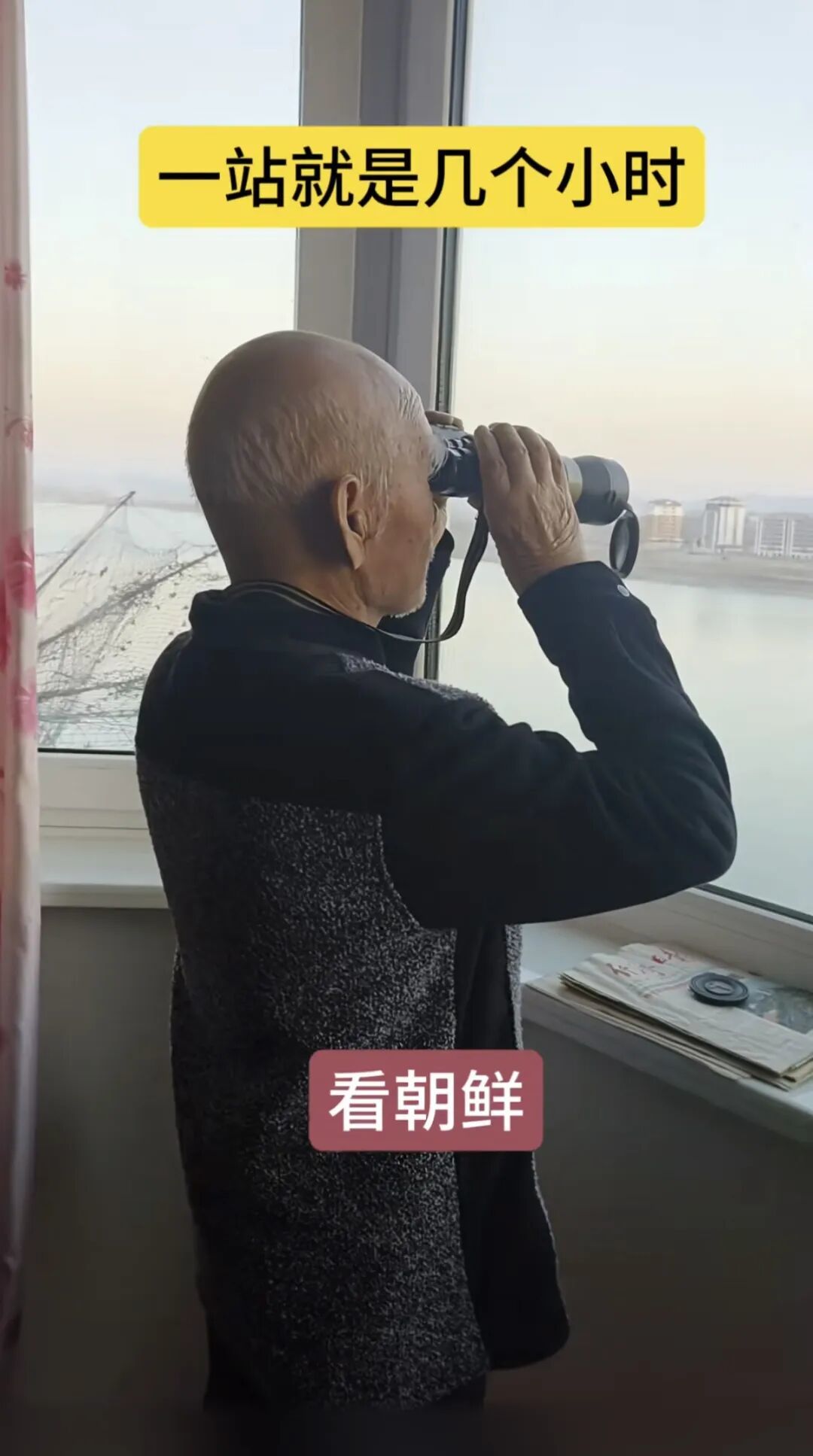 如今他每天站在窗前,望向鸭绿江对岸。那不是看,是守望。
