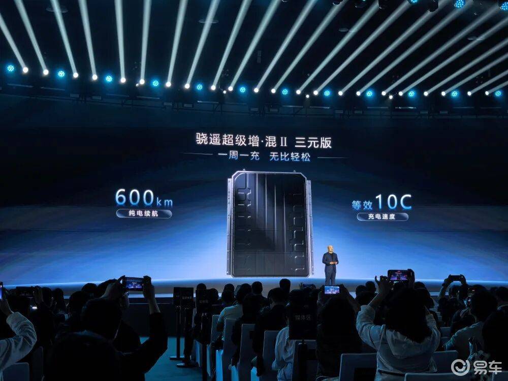 同时,宁德时代还带来了第二代骁遥超级增混三元版电池,纯电续航长达600km,综合续航达到2000km,等效充电速度同样达到10C,高焕直接喊出了“400km只是增混及格线,600km才是增混新赛点”。
