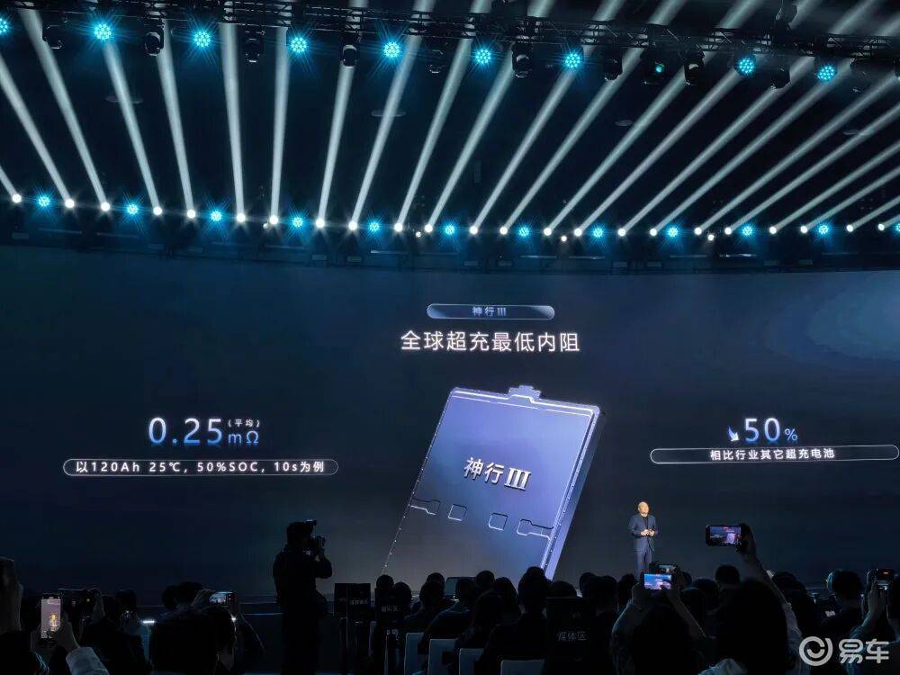首先在内阻方面,第三代神行电池拥有全球超充电池最低内阻,低至平均0.25毫欧,相比行业其它超充电池低50%。