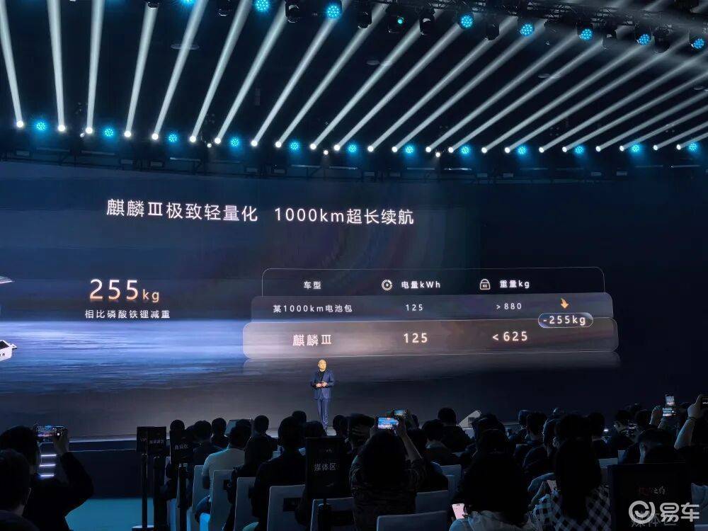 在重量方面,125kWh容量第三代麒麟电池相比同容量的磷酸铁锂电池重量低了255kg,约等于三个成年人的体重,可以在操控方面带来加速、避险和制动的优势,同时可以降低整车能耗。
